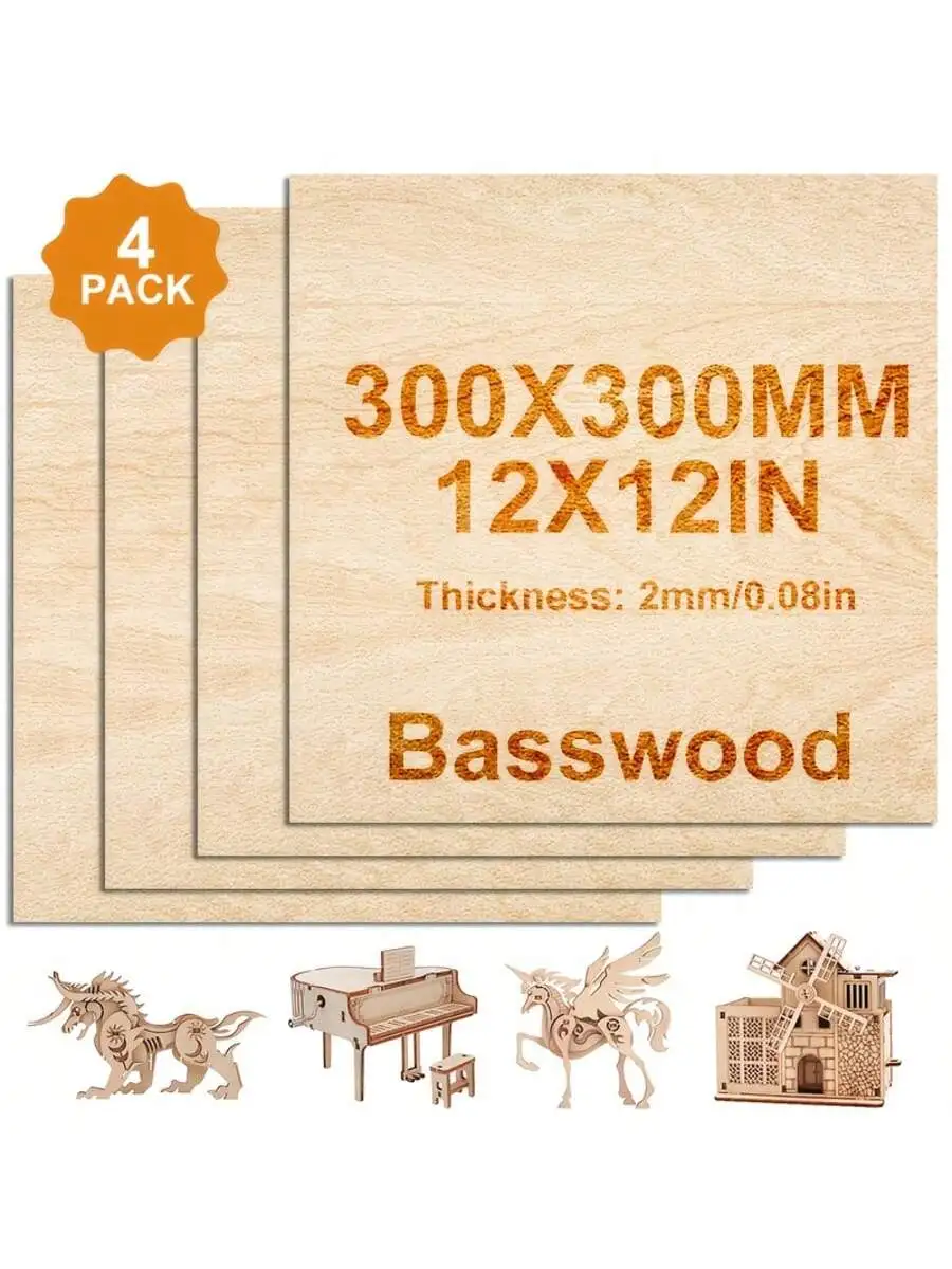 Unfinished Basswood Plywood Sheets – 4 / 8 / 16 / 32 Pieces