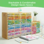 Crafted from natural bamboo, it offers durability, stability, and a modern, eco-friendly look. Multiple slots hold markers upright for easy access and better ink longevity, making it ideal for alcohol markers, brush pens, and other art tools.