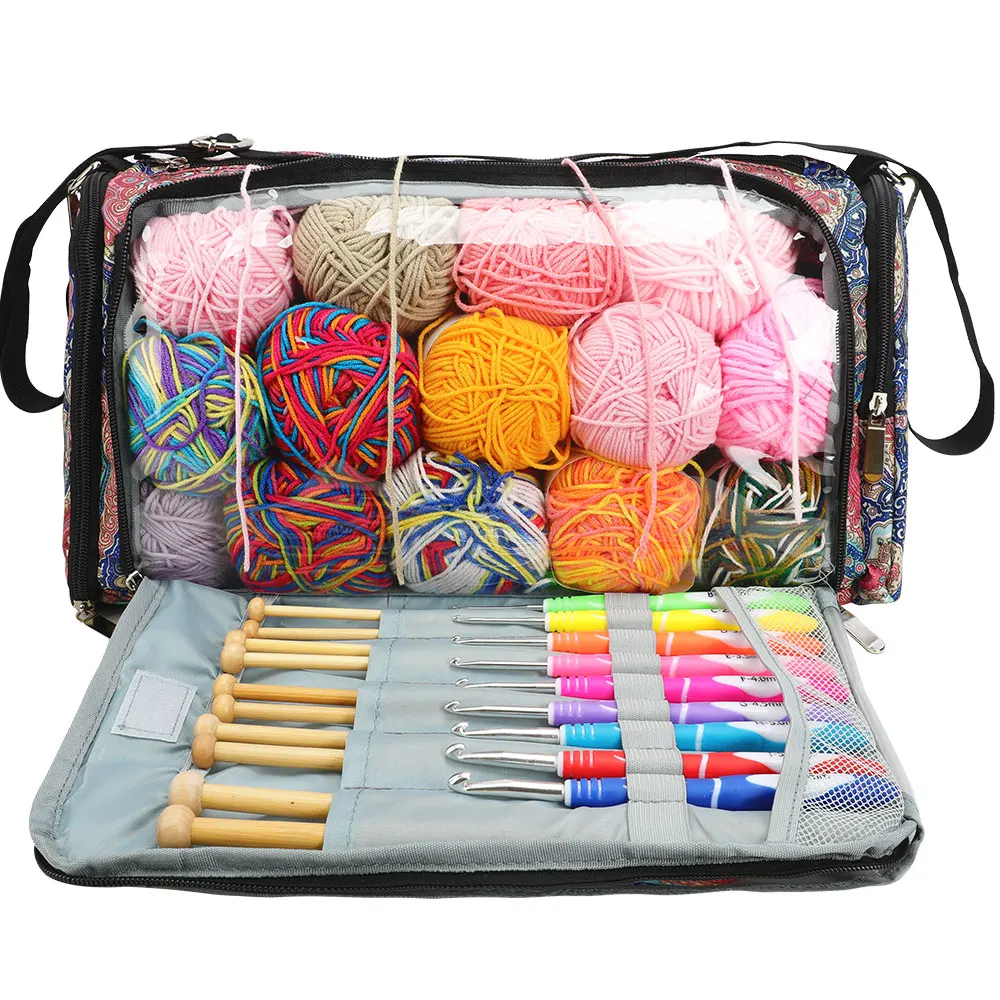 Made from durable, lightweight materials, this bag offers plenty of room to keep your yarn organized, tangle-free, and easy to access. Multiple compartments and pockets help you sort hooks, needles, scissors, stitch markers, and more, so everything you need for your crochet projects is right at your fingertips.